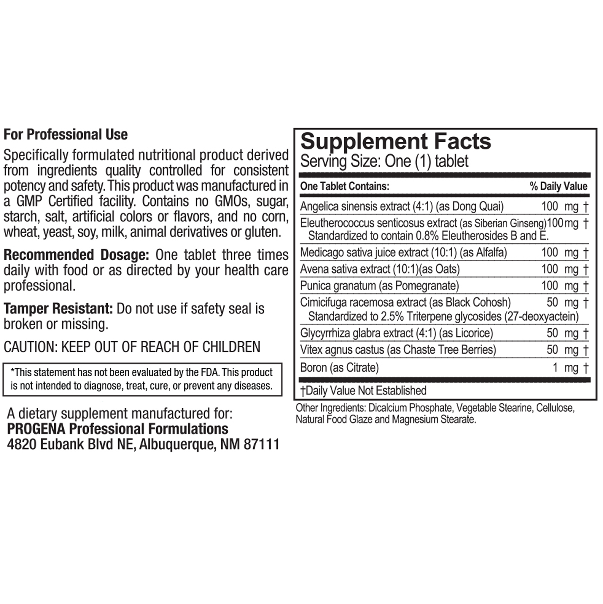 | Angelica sinensis extract (4:1) (Dong Quai) | 100 | mg | ||