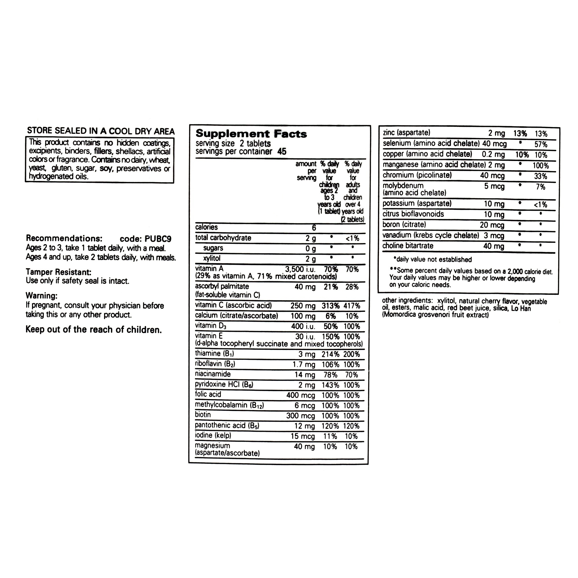 Ages 4 and up, take 2 chewable tablets per day, with meals.