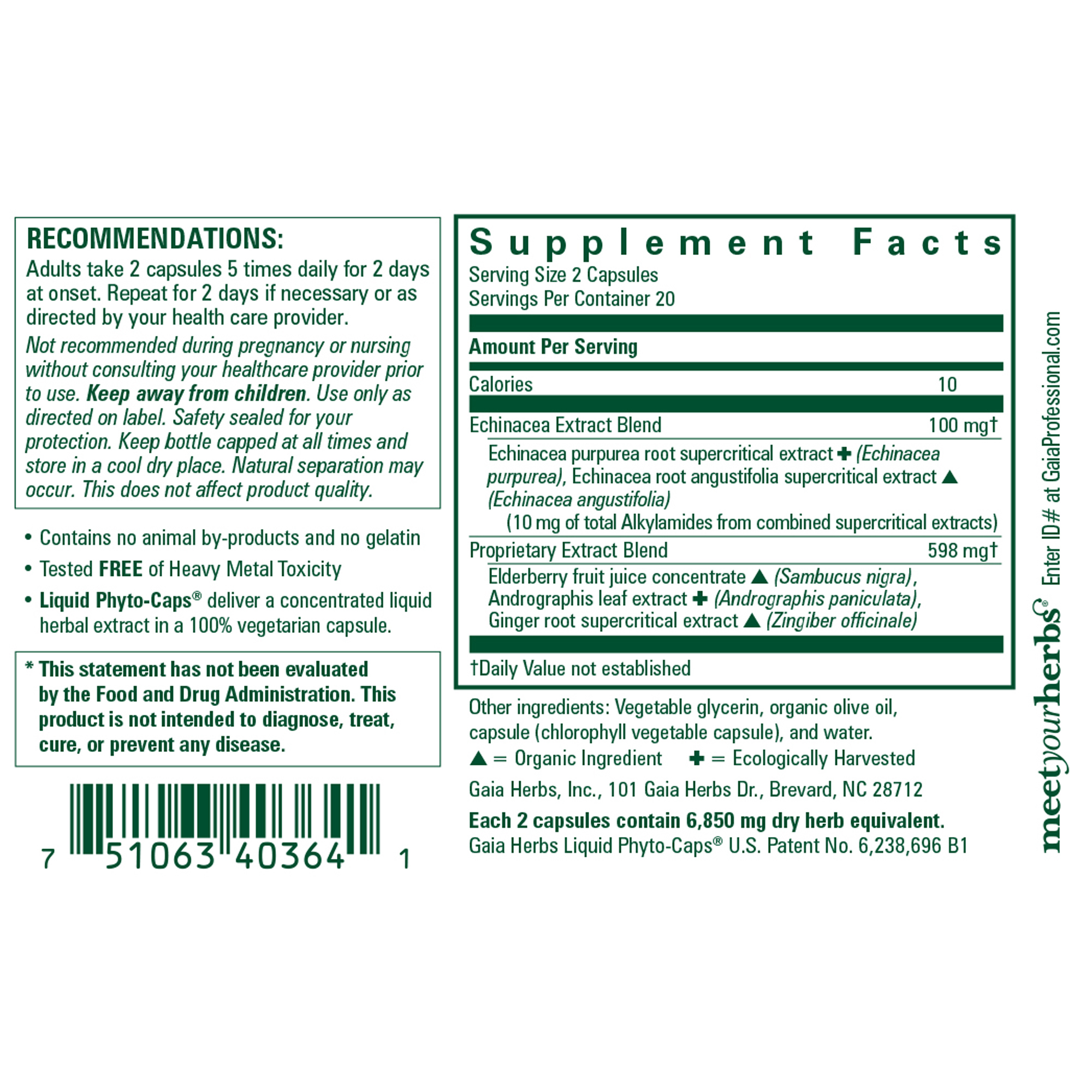 (Echinacea purpurea root supercritical extract+ (Echinacea purpurea), Echinacea root angustifolia supercritical extract** (Echinacea angustifolia))