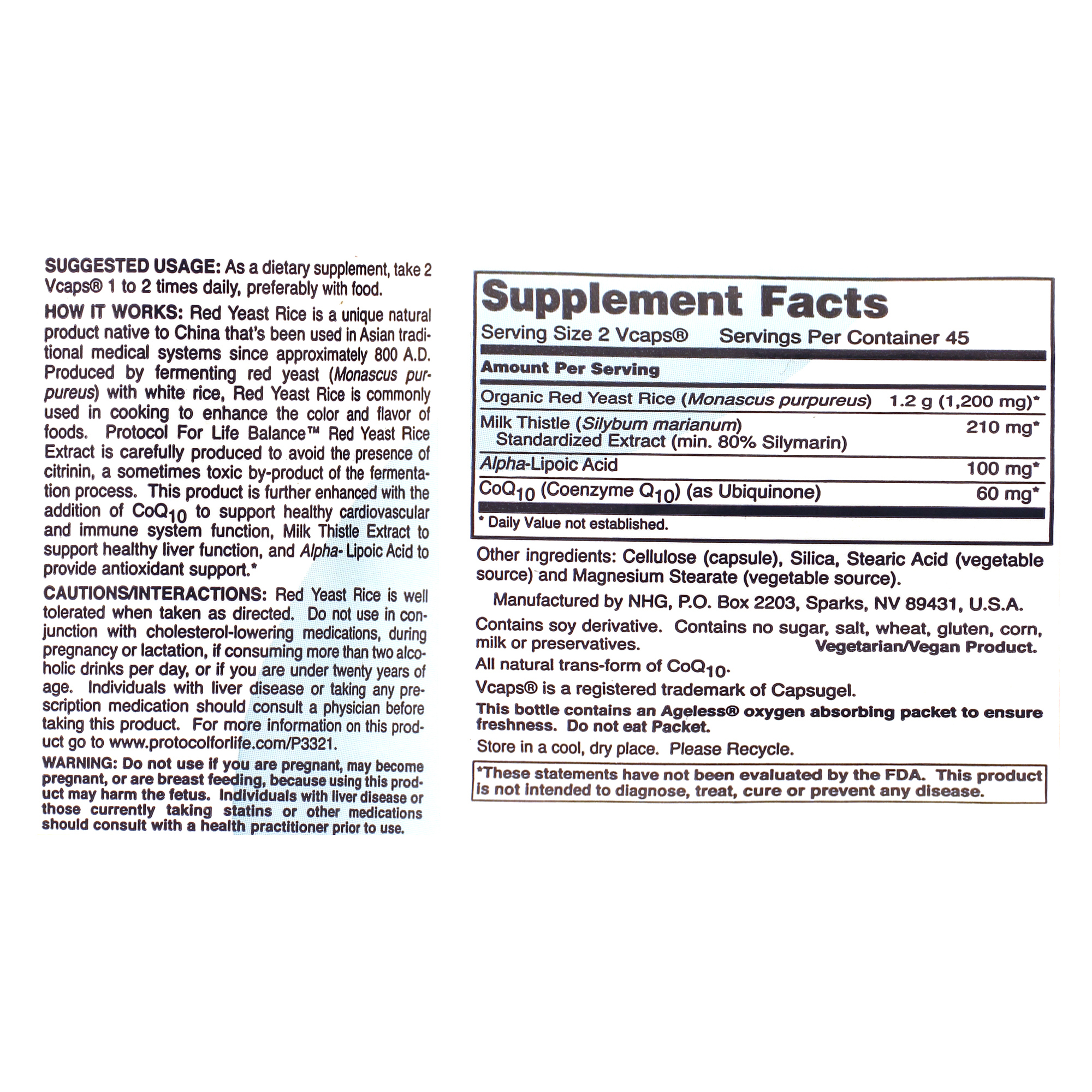 Red Yeast Rice (RYR) is a natural product that has been used by Asian traditional herbalists for centuries and is produced by fermenting Red Yeast (Monascus purpureus) with rice. It is commonly used in cooking to enhance the color and flavor of foods. Red Yeast Rice Plus includes Alpha-Lipoic Acid and CoQ10 for free radical protection, as well as Silymarin to support healthy liver function.* CoQ10 is also known for its cardiovascular supporting properties.* This product is carefully produced to avoid the presence of citrinin, an unwanted by-product of RYR fermentation process.
