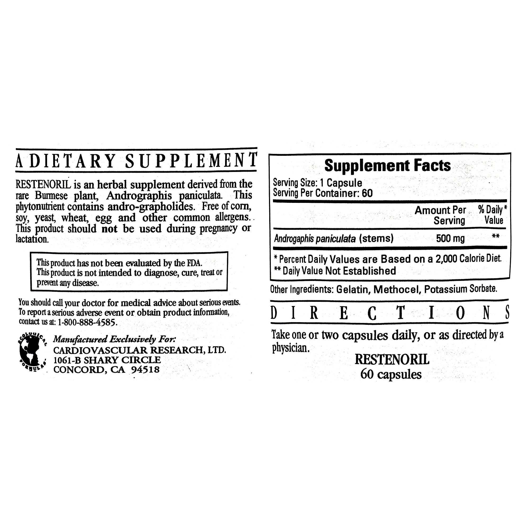 Restenoril is an herbal supplement derived from the rare Burmese plant, Andrographis paniculata. This phytonutrient contains andro-grapholides.