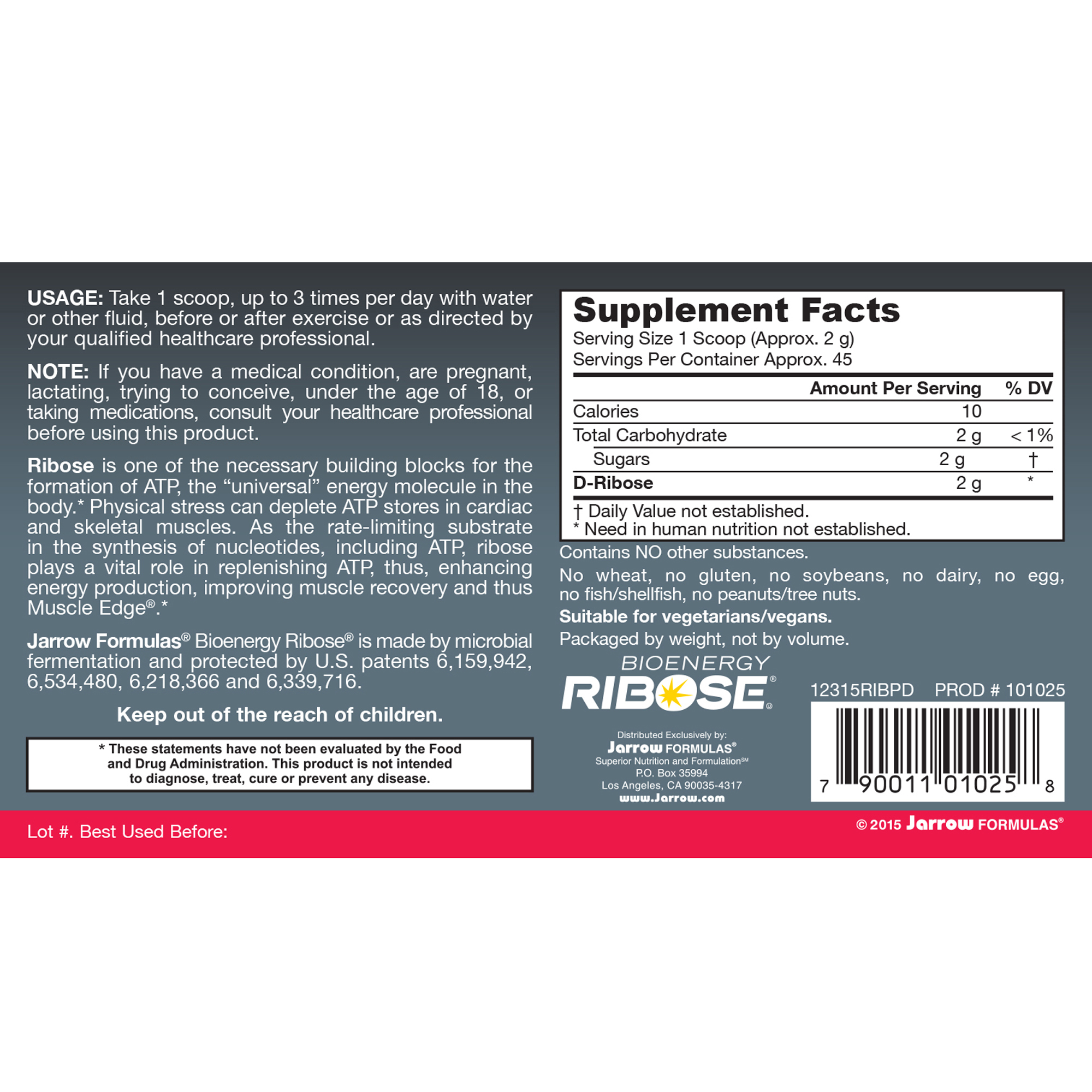 Ribose is one of the necessary building blocks for the formation of ATP, the “universal” energy molecule in the body.* Physical stress can deplete ATP stores in cardiac and skeletal muscles. As the rate-limiting substrate in the synthesis of nucleotides, including ATP, ribose plays a vital role in replenishing ATP, thus, enhancing energy production, improving muscle recovery and thus Muscle Edge®.*