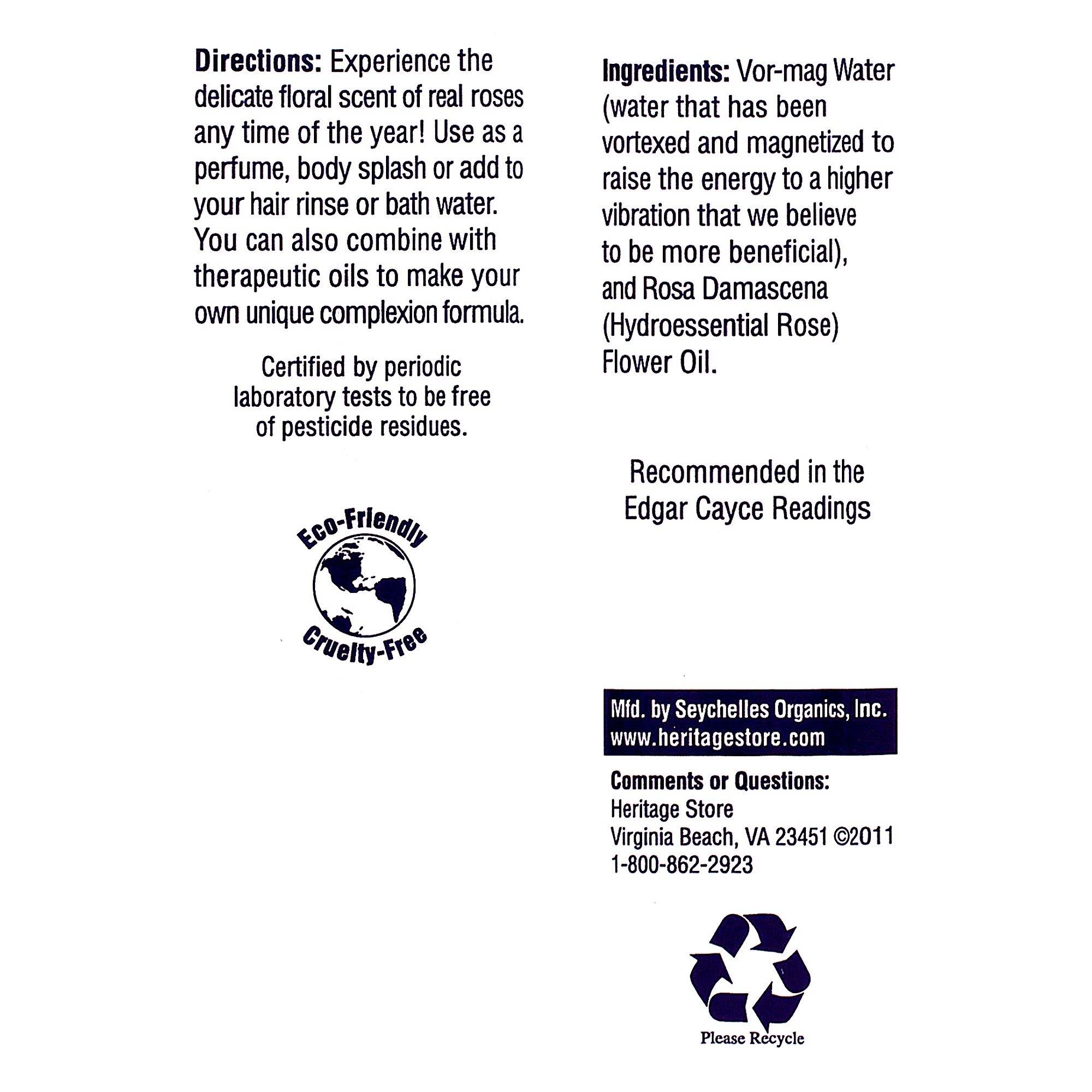 Ingredients: Vor-mag Water (water that has been vortexed and magnetized to raise the energy to a higher vibration that we believe to be more beneficial). and Rosa Damascena (Hydroessential Rose) Flower Oil.