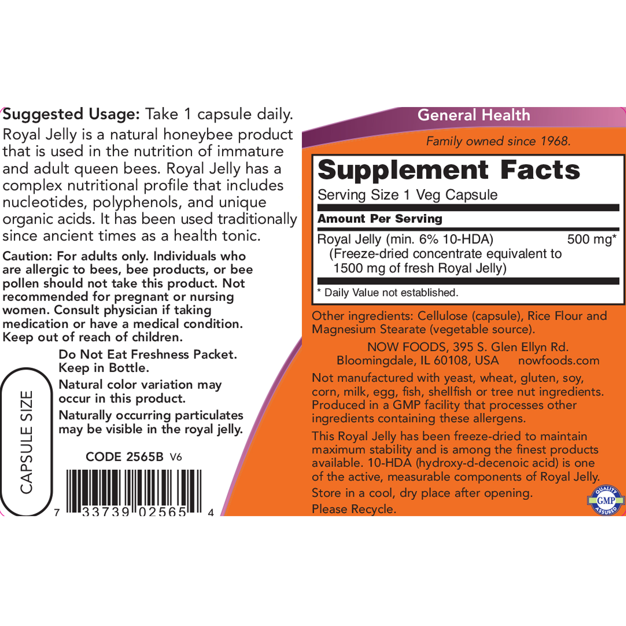 Royal Jelly is a natural honeybee product that is used in the nutrition of immature and adult queen bees. Royal Jelly has a complex nutritional profile that includes nucleotides, polyphenols, and unique organic acids. It has been used traditionally since ancient times as a health tonic.