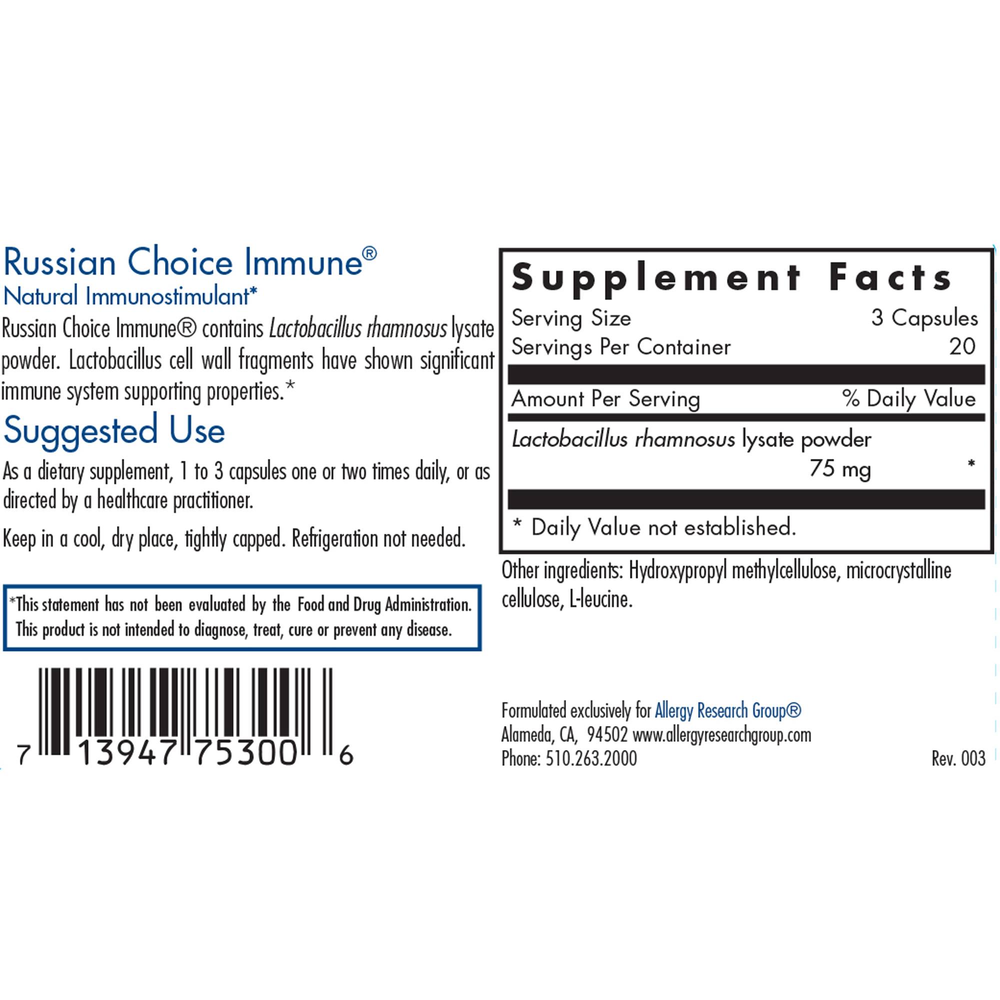 Russian Choice Immune is available by Allergy Research Group.