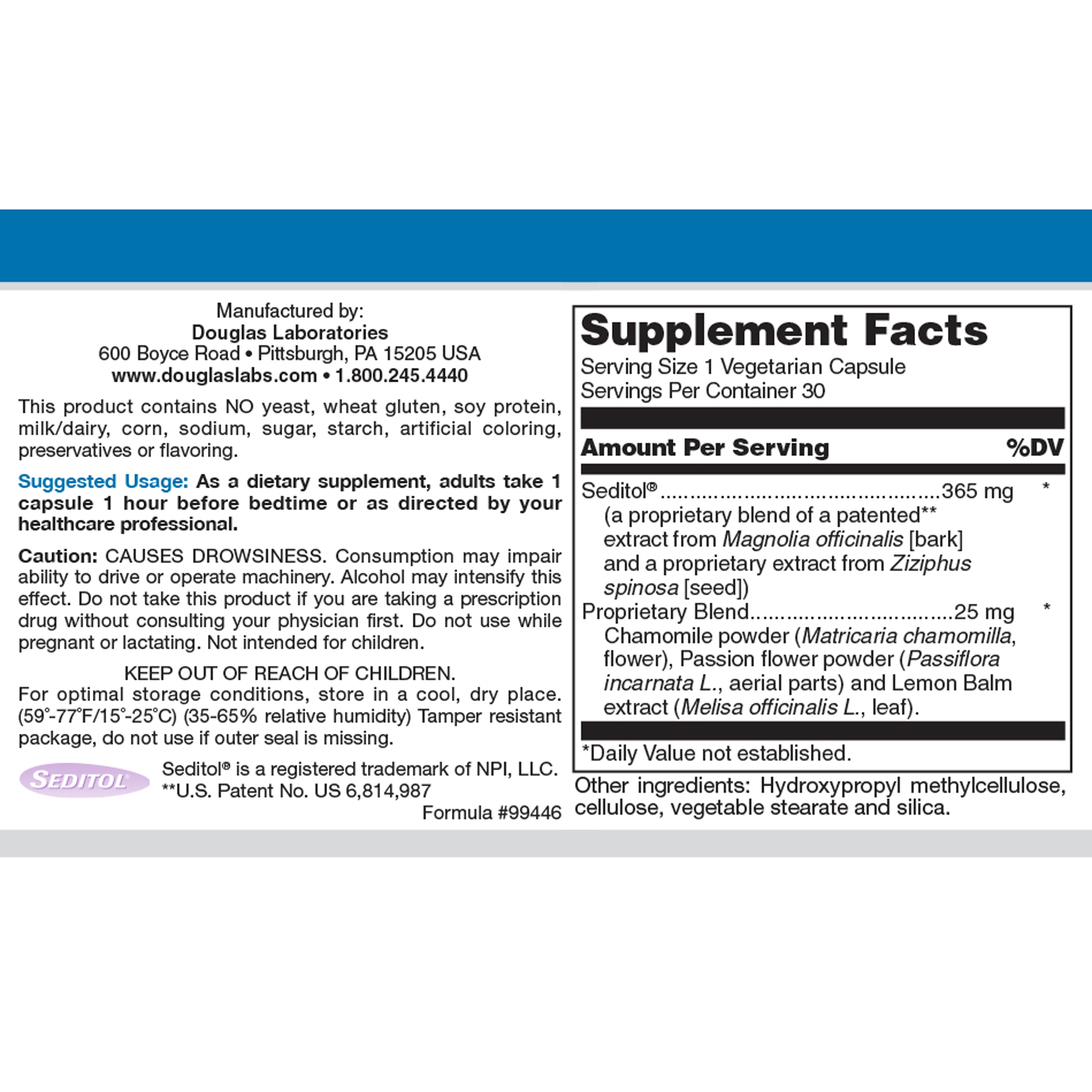 Seditol® is a registered trademark InterHealth N.I. Seditol® brand Magnolia officinalis and Ziziphus spinosa (U.S. Patents 6, 582, 735 and 6, 814, 987)