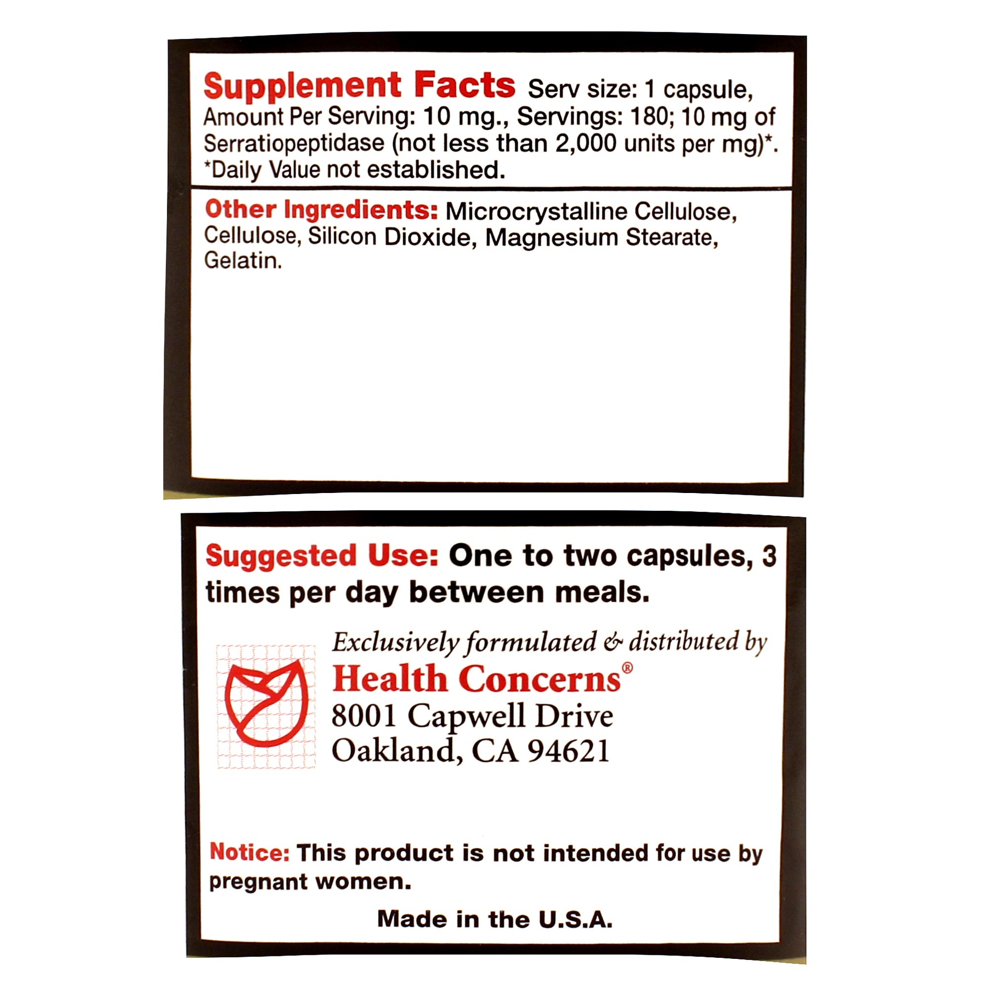Serratiopeptidase 10 mg. per enterically coated capsule (not less than 2, 000 units per mg.) derived from L serratia E15
