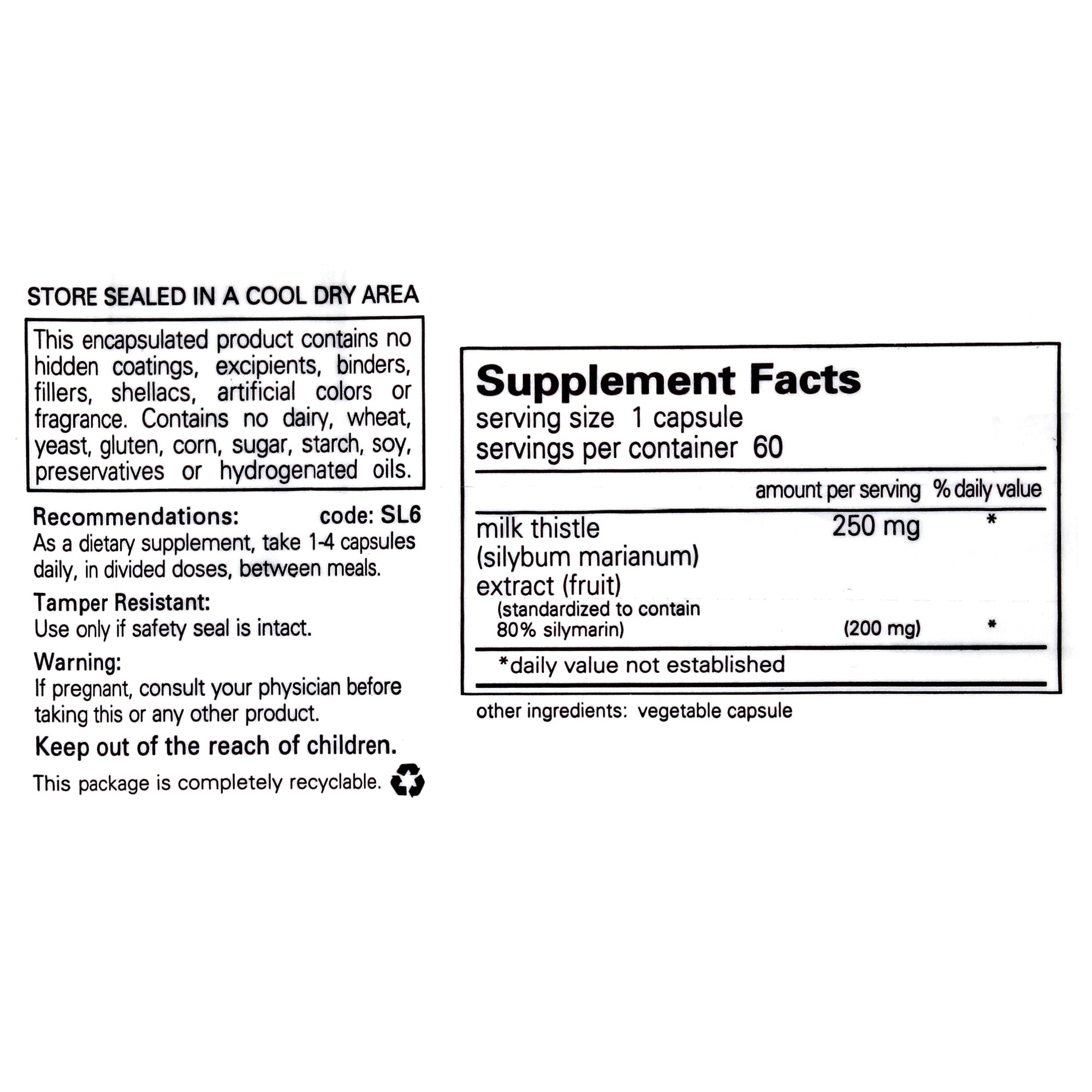Silymarin is a milk thistle extract that nutritionally supports liver function. This highly active botanical protects the liver from free radical damage, supports glutathione concentrations and promotes superoxide dismutase activity. Milk thistle extract also stimulates protein synthesis in hepatic cells.