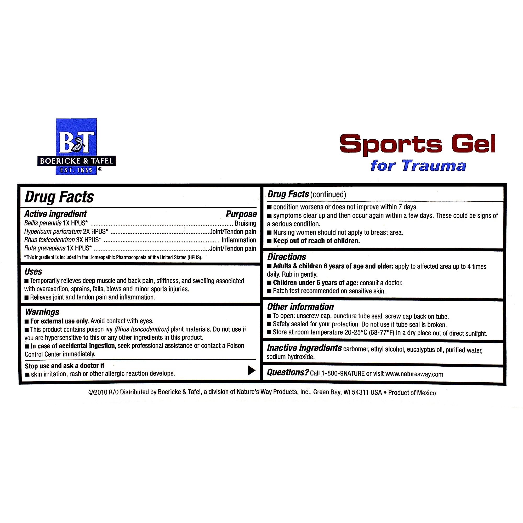 Sports Gel for Trauma contains no aspirin, non-steroidal anti-inflammatory drugs,
