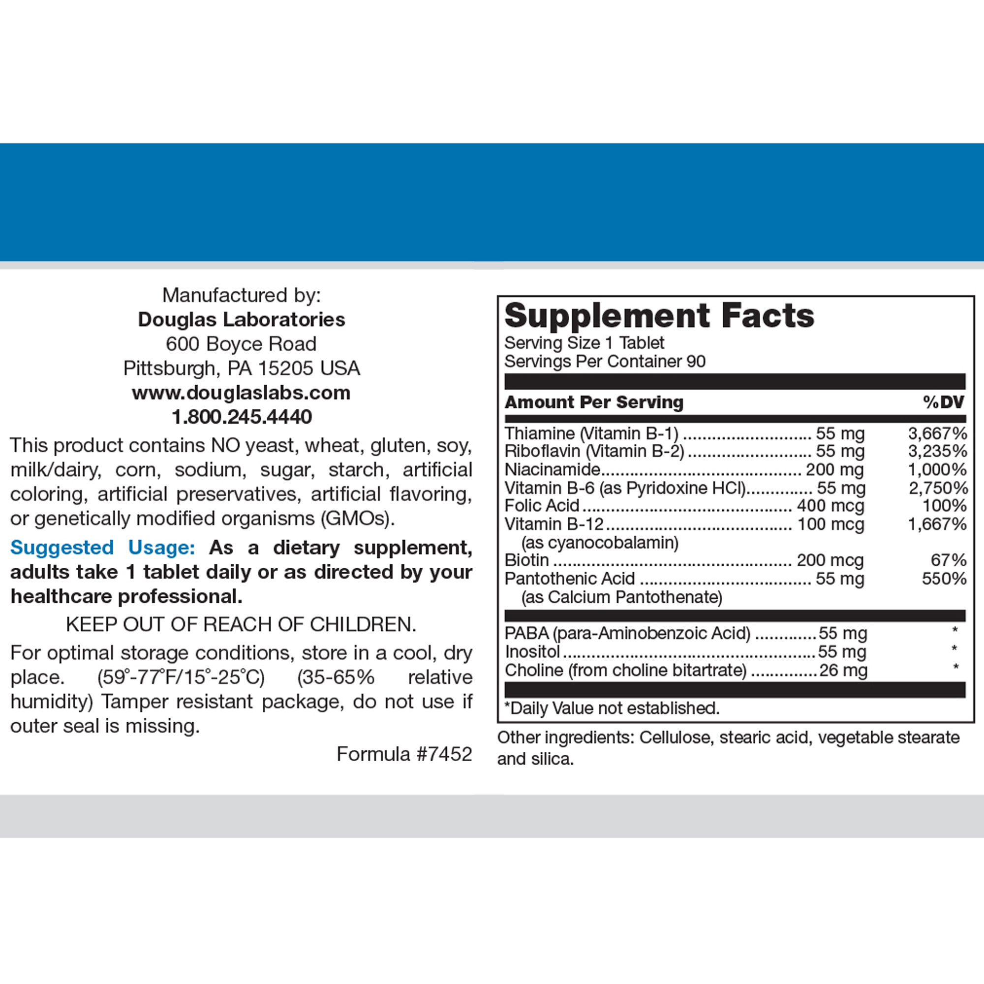 Stress-B-Plus, manufactured by Douglas Laboratories, is a comprehensive B supplement providing all of the essential B vitamins as well as related nutrients. FUNCTIONS As co-enzymes, the B vitamins are essential components in most major metabolic reactions. They play an important role in energy production, including the metabolism of lipids, carbohydrates, and proteins. B vitamins are also important for blood cells, hormones, and nervous system function. † As water-soluble substances, B vitamins are not generally stored in the body in any appreciable amounts (with the exception of vitamin B-12). Therefore, the body needs an adequate supply of B vitamins on a daily basis. Thiamin, riboflavin, and niacin are all essential coenzymes in energy production. Thiamin is converted quickly into thiamin pyrophosphate, which is required for glycolytic and Krebs cycle reactions. Thiamin also appears to be related to nerve impulse transmission. Riboflavin is a component of the coenzymes FAD and FMN, which are intermediates in many redox reactions, including energy production and cellular respiration reactions. Niacin is also a component of the coenzymes NAD and NADP, which are involved in energy production, as well as biosynthetic processes. †