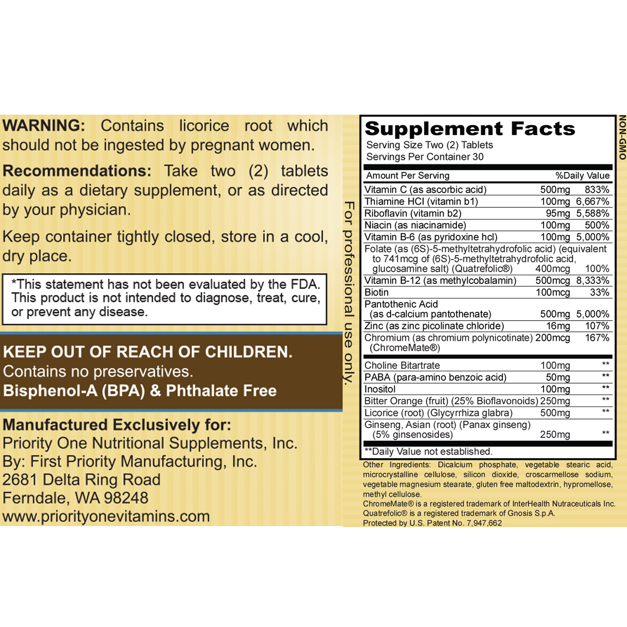 Stress Plex is a high potency B-complex with added nutrients to support a healthy nervous system, gastrointestinal tract, skin, eyes, brain, and adrenal health. These areas of the body may be compromised during periods of increased stress and anxiety*