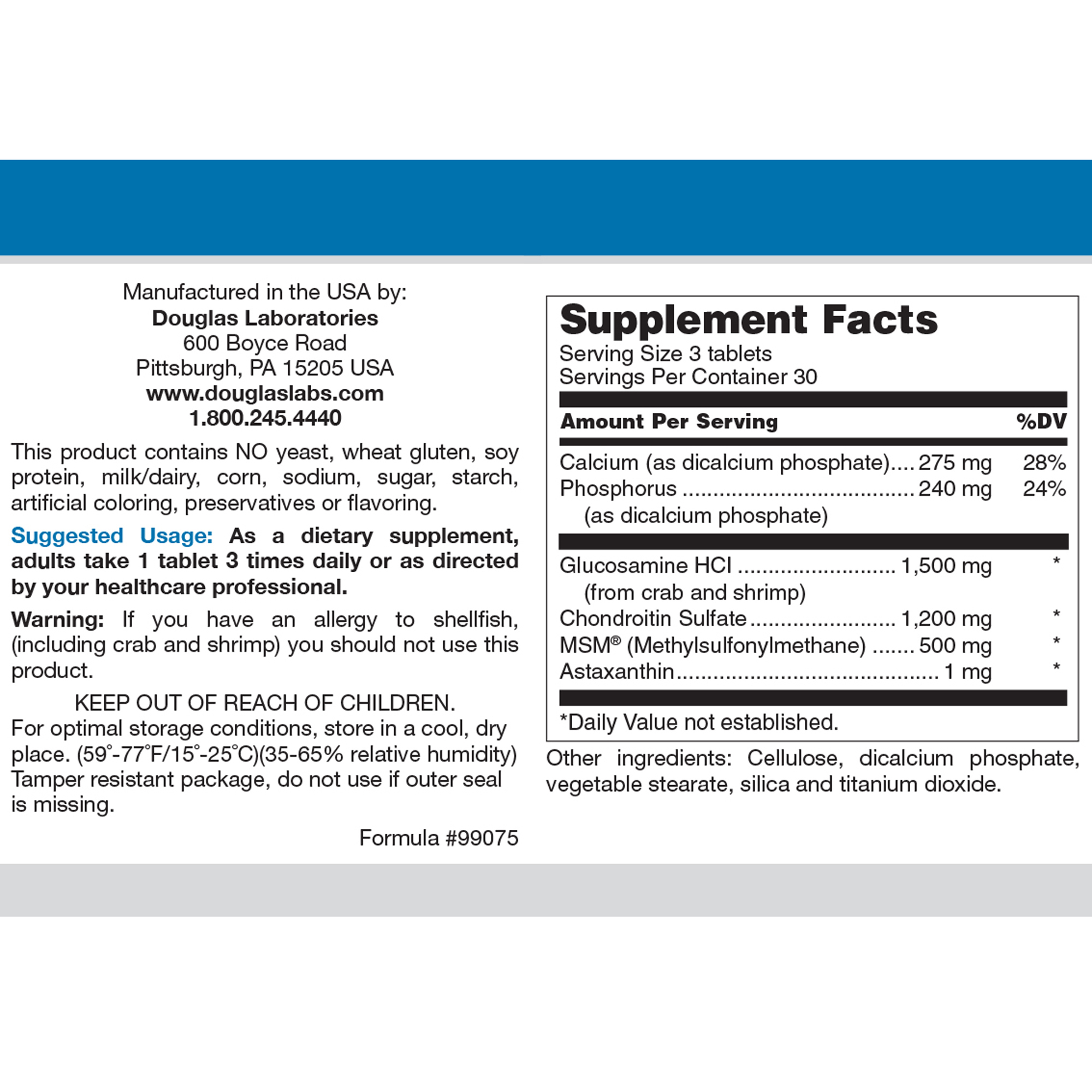 Ultra Joint Forte, provided by Douglas Laboratories, contains a synergistic combination of glucosamine, chondroitin, methylsulfonylmethane(MSM), and astaxanthin. Glucosamine HCl is a well-absorbed source of glucosamine, an important precursor for the synthesis and maintenance of connective tissues. Chondroitin sulfate also supports formation of connective tissues, primarily joint cartilage, and helps protect existing cartilage. MSM, a derivative of DMSO, is a naturally occurring compound of biologically available sulfur. Astaxanthin is a natural carotenoid that can help modulate the body’s normal inflammatory response.