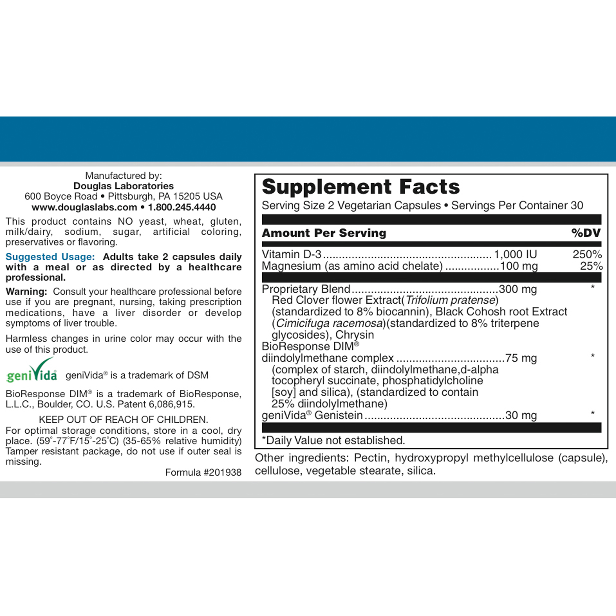 Red Clover flower Extract(Trifolium pratense) (standardized to 8% biocannin), Black Cohosh root Extract