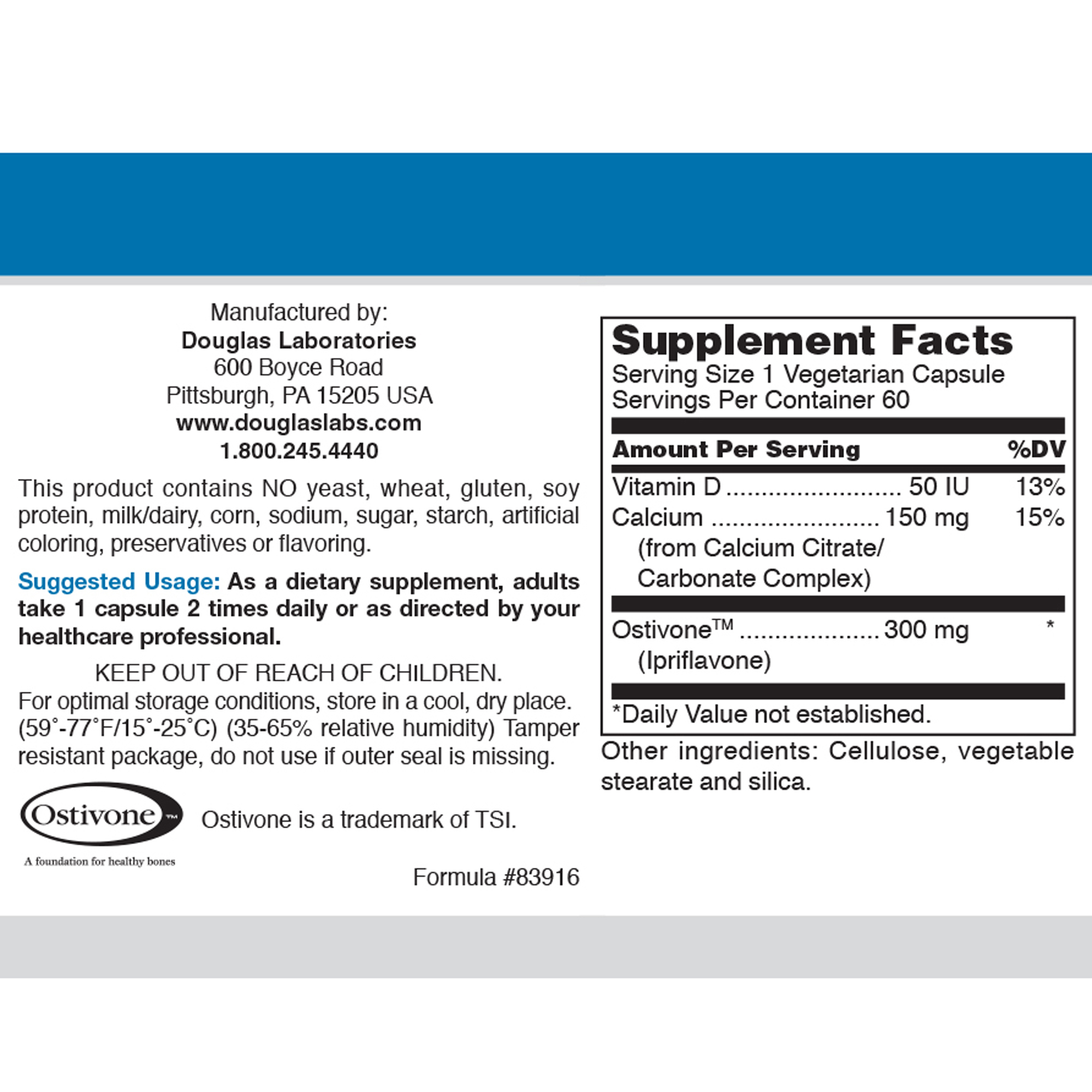 Ultra-Ostivone from Douglas Laboratories is a dietary supplement with highly absorbable calcium, vitamin D, and ipriflavone that provides outstanding nutritional support for bone structure and function.