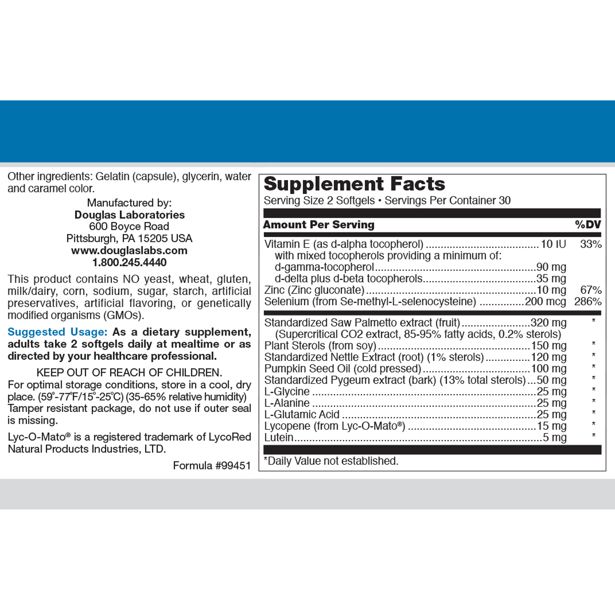 Ultra Uni-Pros-Trol softgels provided by Douglas Laboratories provide a wide range of nutrients to support prostate health, including a supercritical CO2 extract of saw palmetto, lycopene, as well as standardized pygeum and nettle extracts. Additionally, Ultra Uni-Pros-Trol provides ingredients such as lutein that are not typically found in male health formulas. This formulation also provides a significant amount of d-gammatocopherol.
