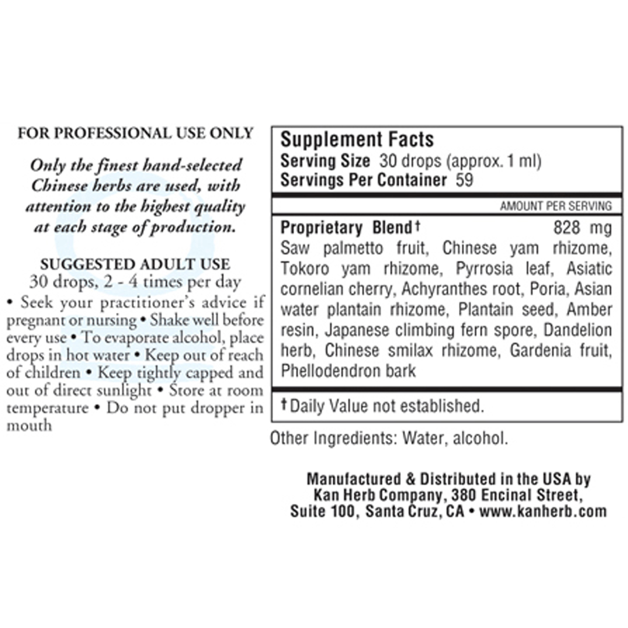 Saw palmetto, Shan yao, Bi xie, Shi wei, Shan zhu yu, Huai niu xi, Fu