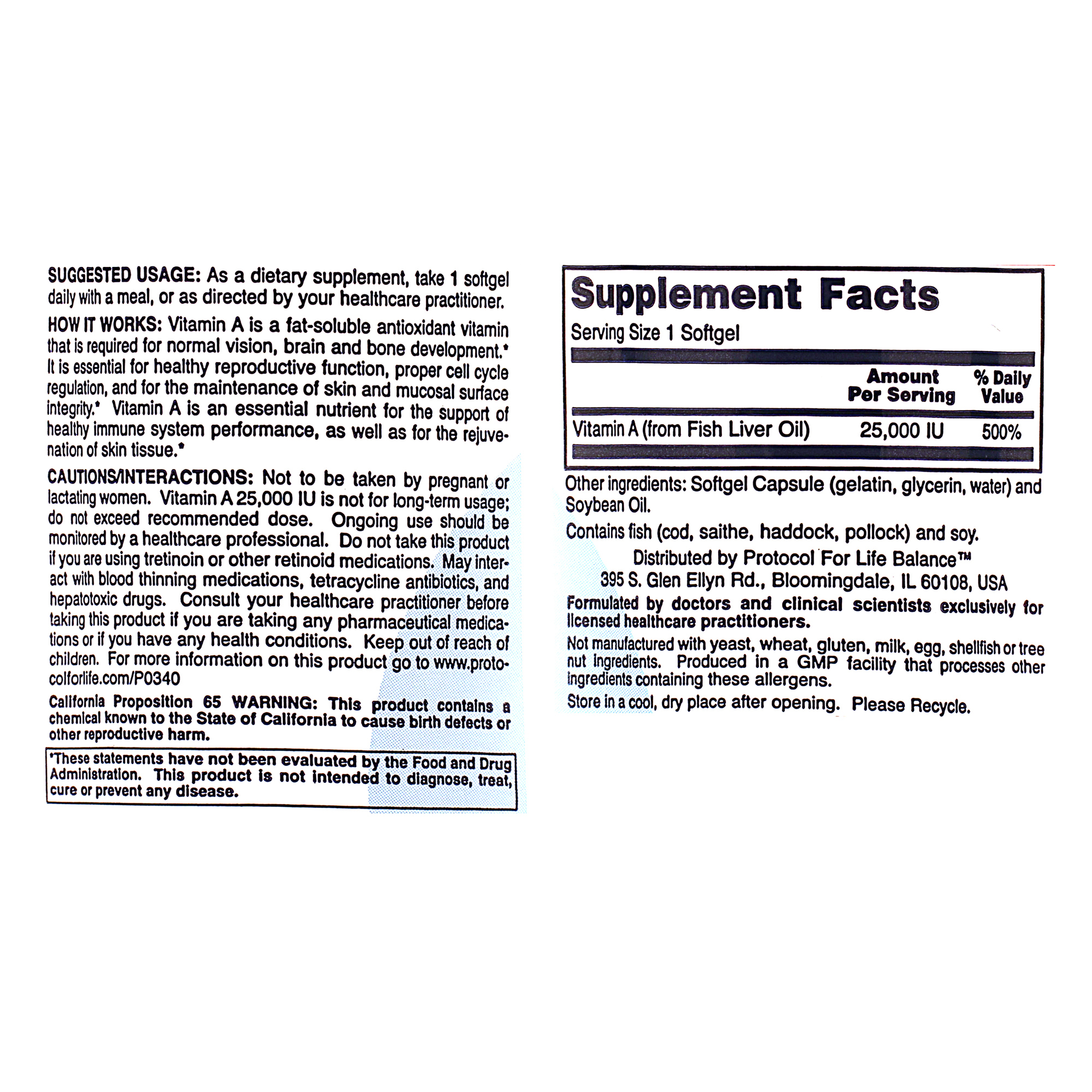 Vitamin A is a fat-soluble antioxidant vitamin that is required for normal vision, brain and bone development.* It is essential for healthy reproductive function, proper cell cycle regulation, and for the maintenance of skin and mucosal surface integrity.* Vitamin A is an essential nutrient for the support of healthy immune system performance, as well as for the rejuvenation of skin tissue.*