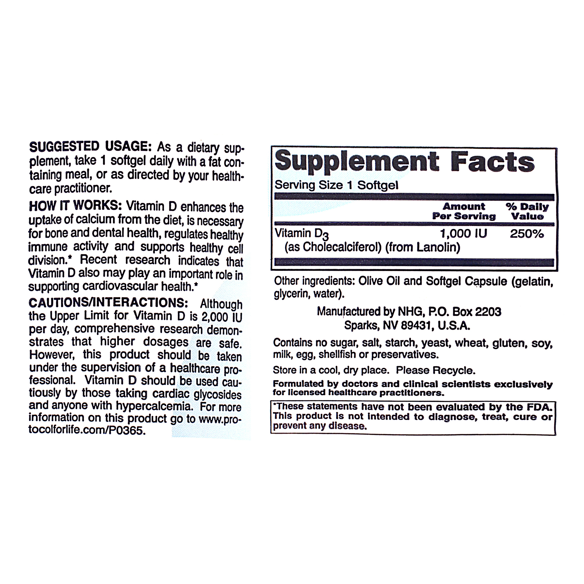 Vit D-3 1, 000IU 120sg is available by Protocol.