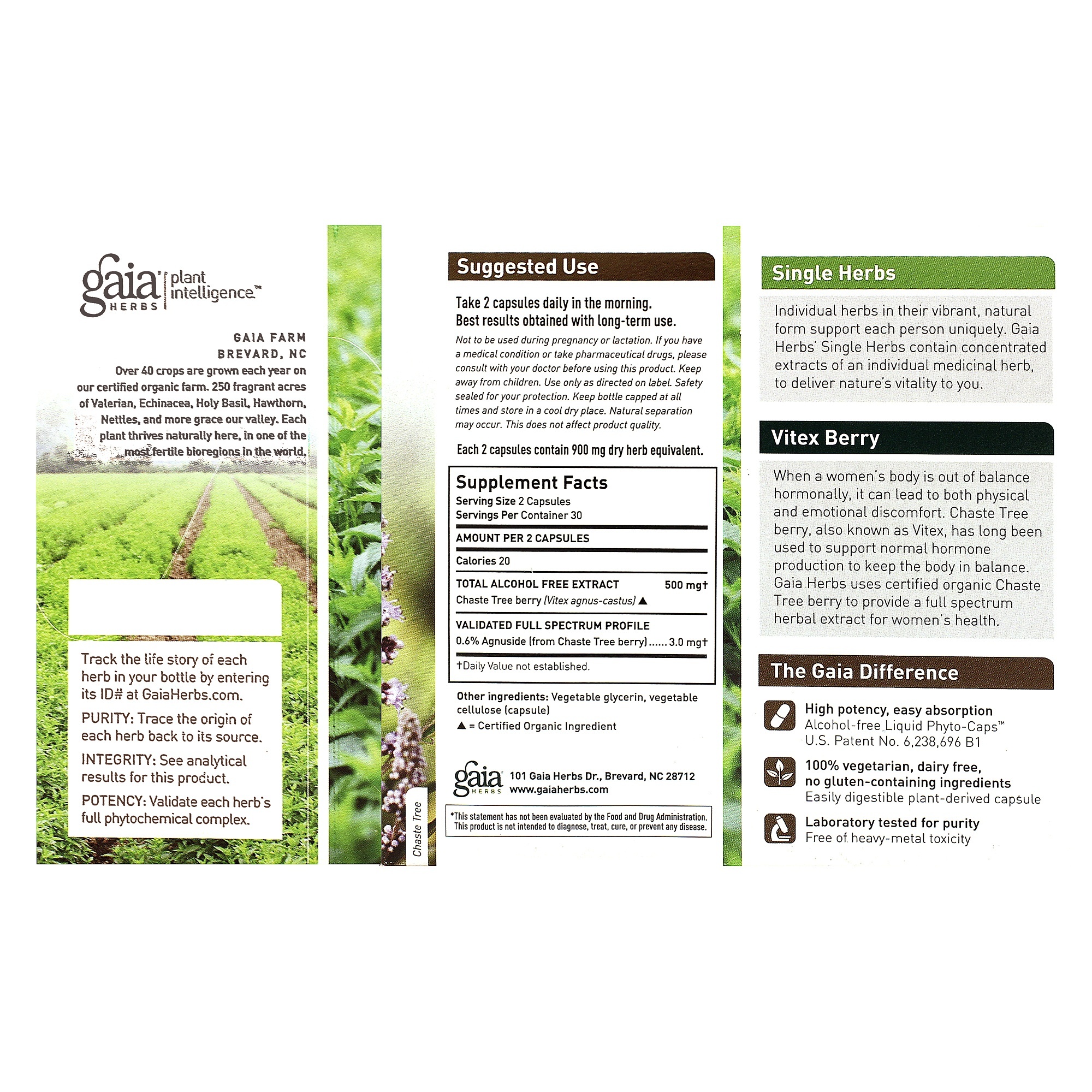 Healthy hormone levels are necessary for a woman’s physical and emotional wellbeing. Chaste Tree berry, also known as Vitex, has long been used to support hormone production and balance.* Gaia Herbs uses certified organic Chaste Tree berry to provide a full spectrum herbal extract for women’s health.