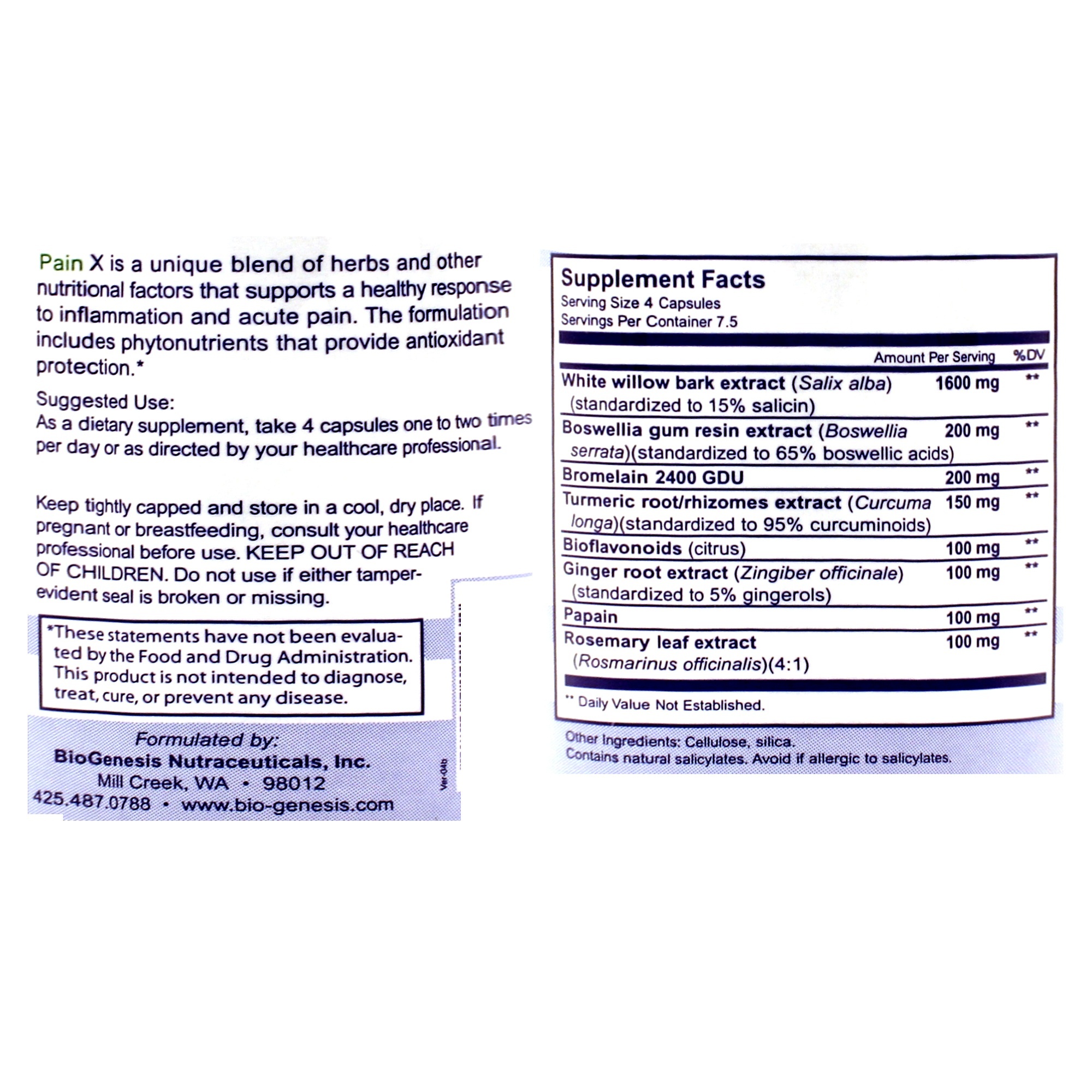 Other Ingredients: Vegetable cellulose capsule, maltodextrin, cellulose, rice bran extract, silica
