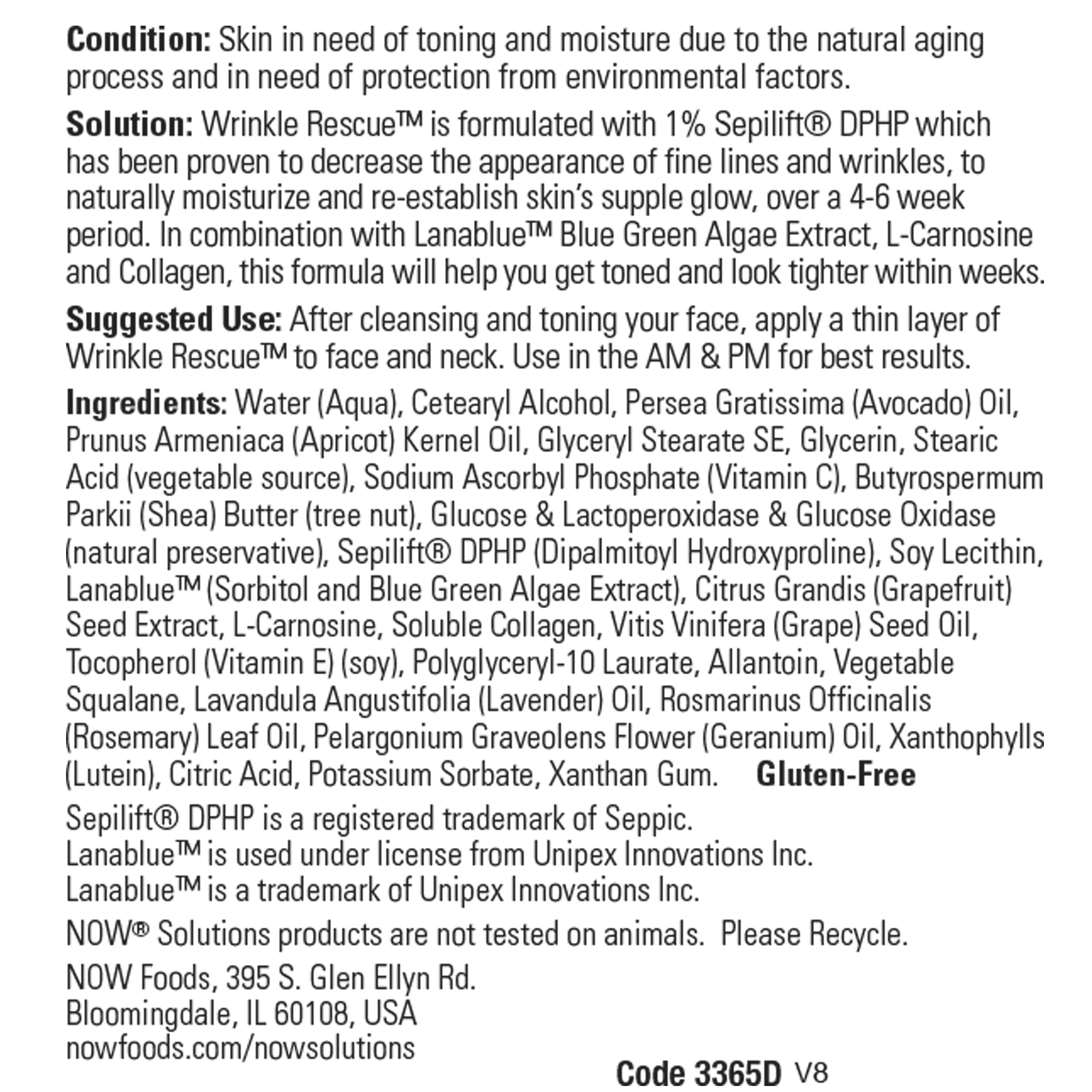 Solution: Wrinkle Rescue? is formulated with 1% Sepilift? DPHP which has been proven to decrease the appearance of fine lines and wrinkles, to naturally moisturize and re-establish skins supple glow, over a 4-6 week period. In combination with Blue Green Algae, L-Carnosine, Collagen and natural oils, this formula will help you get toned and tightened within weeks.