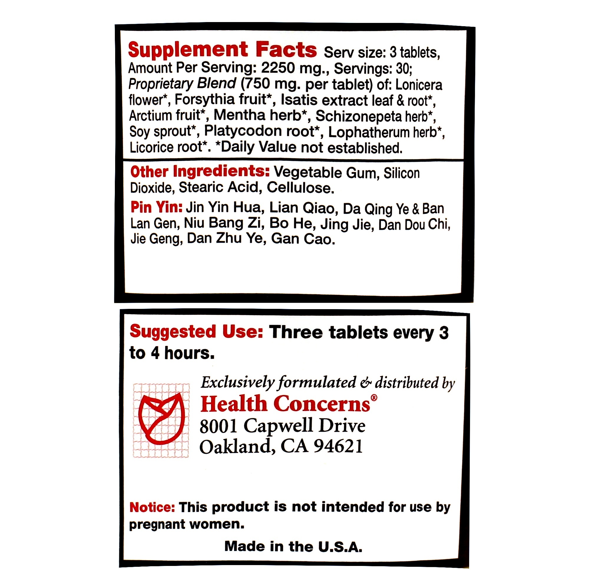 Internal: 3 tablets, 3 times daily between meals. In severe cases take every 4 hours. Discontinue or re-evaluate after the third day of wind attack. 90 tablets, 750 mg, 10 day supply